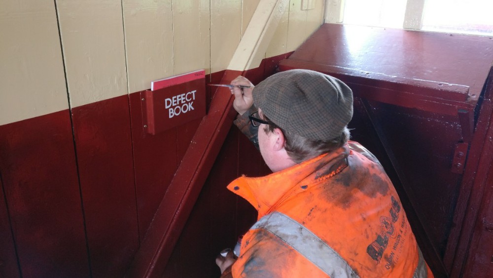 All wagons in the mixed goods rake and some in the van train were given their annual axlebox maintenance which involves checking for water ingress and removing any signs of water or emulsified oil, journal inspection, pad condition check, cleaning the pads, re-oiling the pads and topping up the reservoir with fresh oil. The axleboxes are then re-assembled with new split pins as necessary.