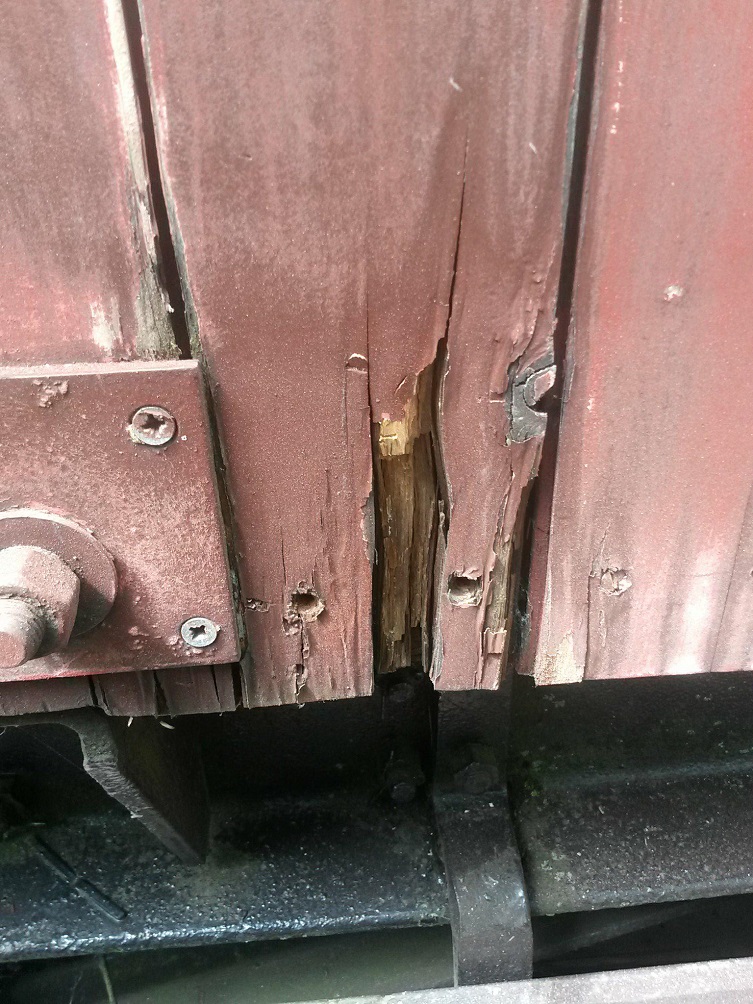 One of the spare corrugated wagon end sections was removed from it’s storage in B721587 and transported to Rothley where it will be used to affect repairs on the badly corroded end of Shock High Wagon B724570.