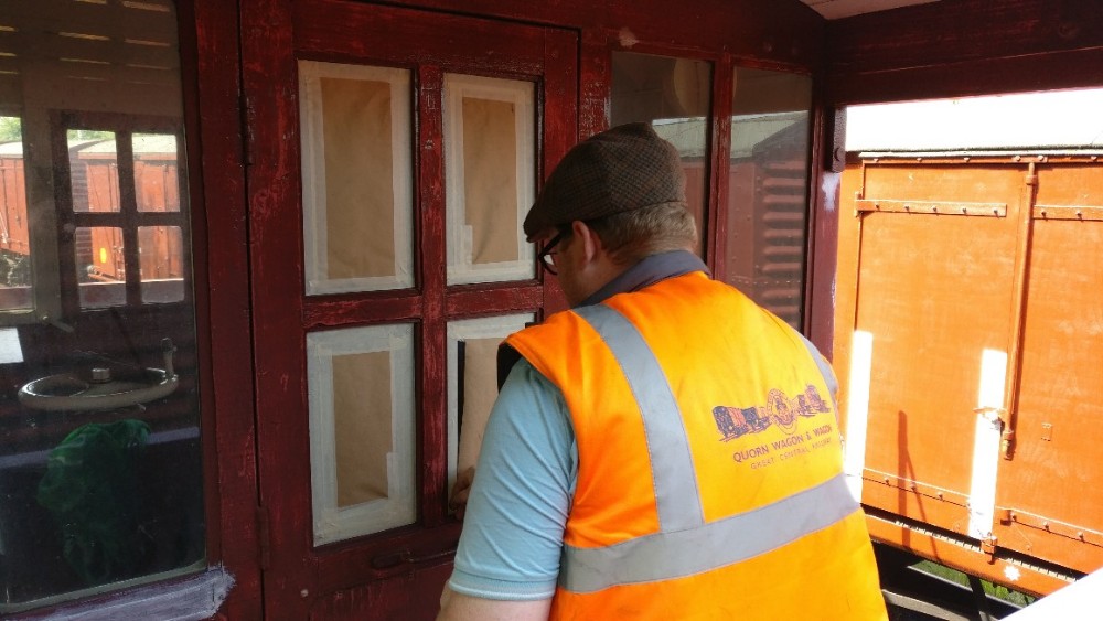 Charlie helped fit the wagon information display boards to the mixed good rake in Quorn Yard for the Rail200 weekend.