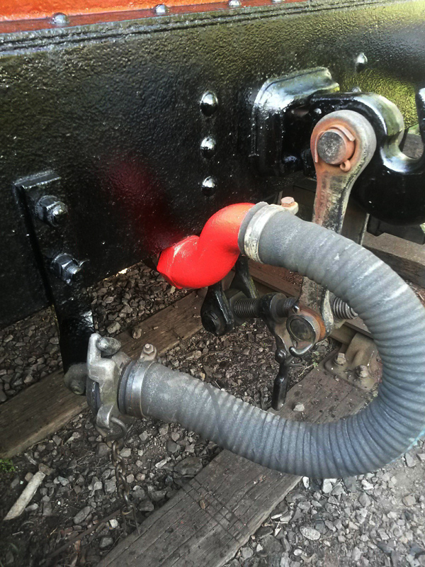 Ernie carried on with the white undercoat, undercoating the lamp brackets. Followed up with a dose of gloss black on the drawhooks, air pipe stowage brackets and steps.