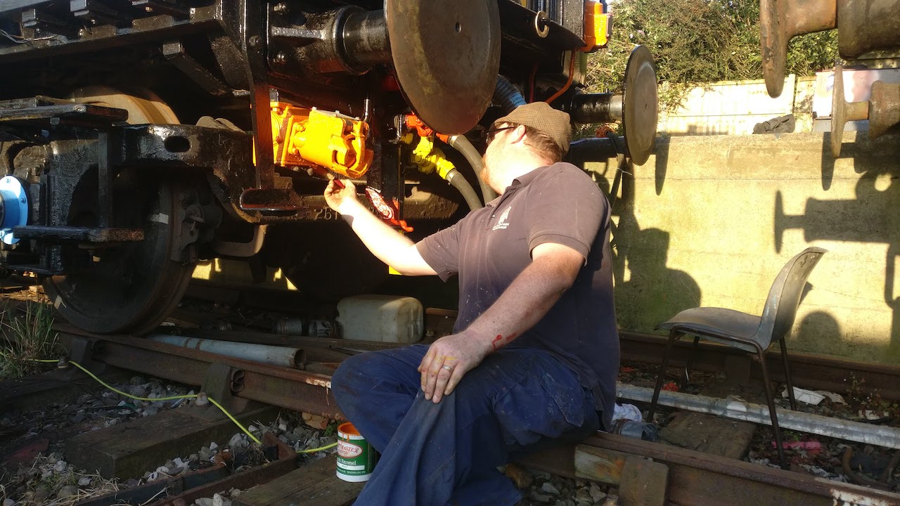 Jake cleaned up and applied undercoat to the buffers. Whilst Dave continued with the “B” end headstock details before being assisted by Jake.
