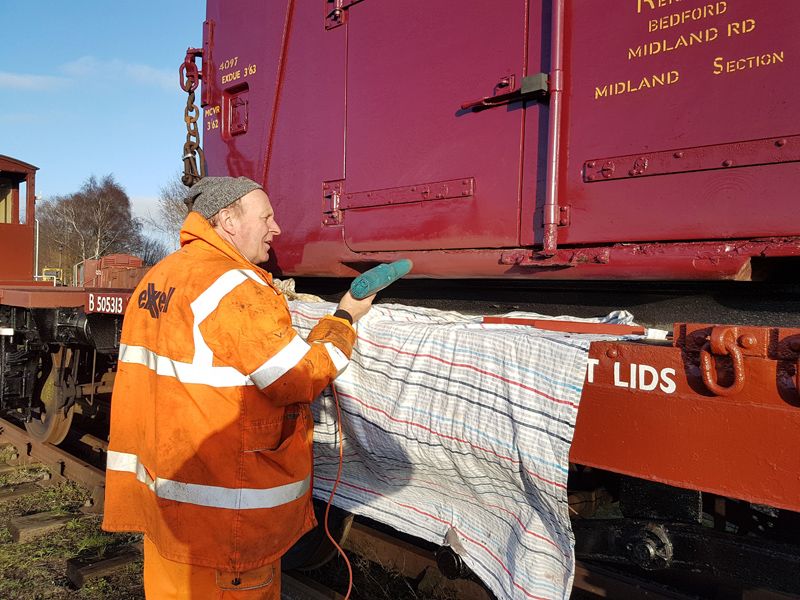 With the day being a little warmer on Sunday the pressure washer was cracked out to clean down 3689. Tom, Dan, Oliver and Tom worked on this most of the day, getting wet through in the process. Most of the unsound paint came off including most of the black sign writing resembling silver snowflakes. After this the team gave 1802 a going over, removing its layer of algae.