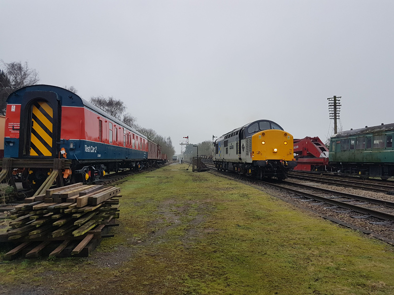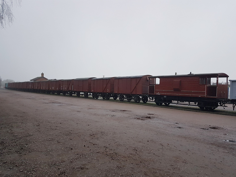 Friday’s main task was the scheduled brake test of the van train. 15 Bauxite Vans, 1 Conflat, 1 Fish van, and 2 Brake vans. Our motive power was once again provided by the Heavy Tractor Group’s 37714. The test was a success, with 19.5 – 20 inHg shown on the 19th vehicle.