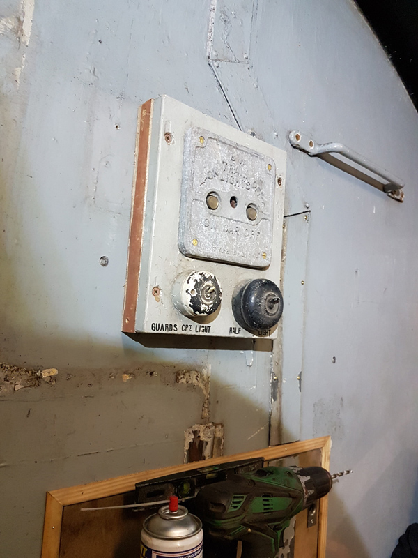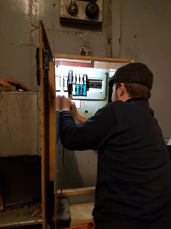 Other tasks included fitting the sawdust bin and chock stowage to the Guards compartment fitting a blanking plate to one of the end sockets used for the new shore supply cable and a look into the electric heating system which is missing its thermostat and is the only fuse not to be reinstated.