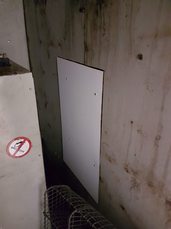 Nick and Jake acted as the odd job men.  Holding, finding and assisting where possible. The other tasks complete were a backing piece for the previously created access hatch.  Fitment of a lighting control panel, moving the detonator storage and fitting a coat hooks.