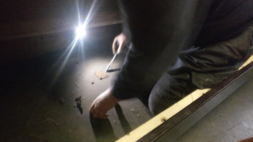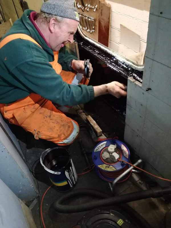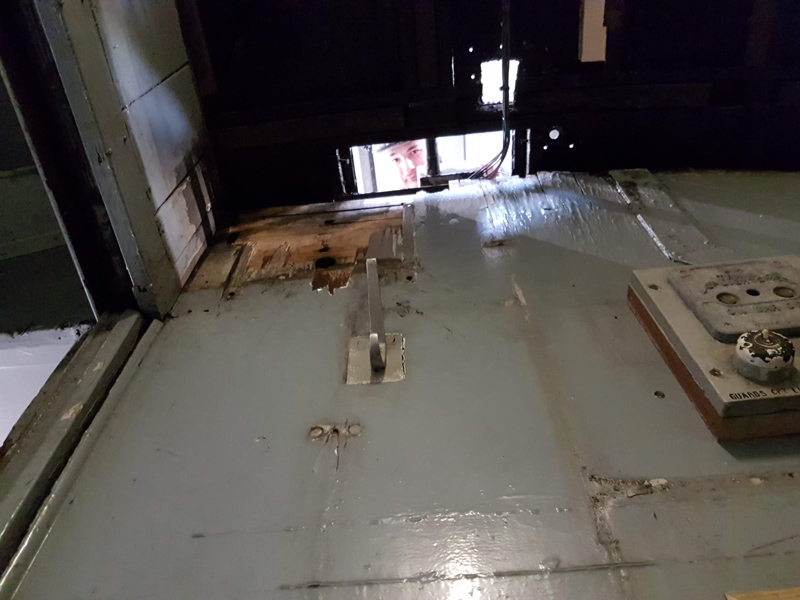 Further sockets were fitted under the messroom table and Jamie’s final task was the removal of rivets to allow access to the northern luggage area corridor window, his next area for welding.