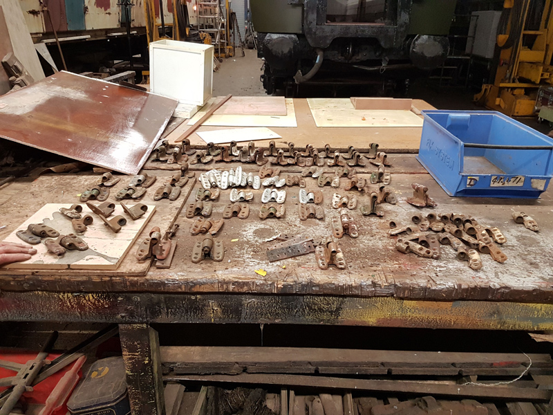 The rest of the team at Quorn removed one of the defective leaf springs from tank 3621 which was taken to Rothley, This will be sent away with the Palshoc springs as a pattern for replacements to be made.