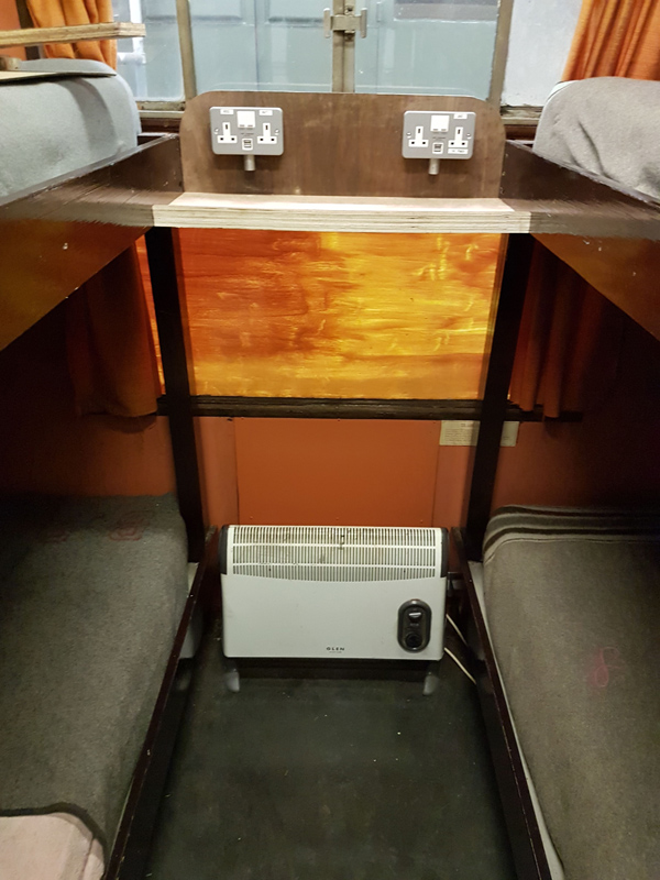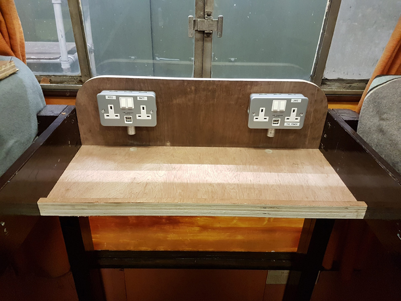 Another task we have begun is to make the vehicle a little more user-friendly specifically for those of us who stay over on occasion.  During the vehicles’ original conversion there were no provisions for modern electrical devices, as these have become a part of everyday life and to increase versatility we have started fitting sockets around the vehicle. Included in this scheme is a shelf in the bunk room to store such modern devices.