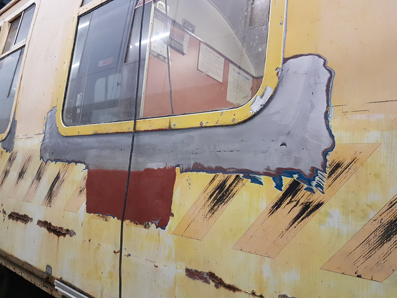 Ernie carried on with Operation Vacuum Colander, tackling the cylinder removed from 3689 with the hole in the side. Using side wall sections out of a donor cylinder, Ernie cut out the rot and replaced with the ‘new’ metal. This kept Ernie busy for most of the weekend, as more metal was put in the more holes appeared!