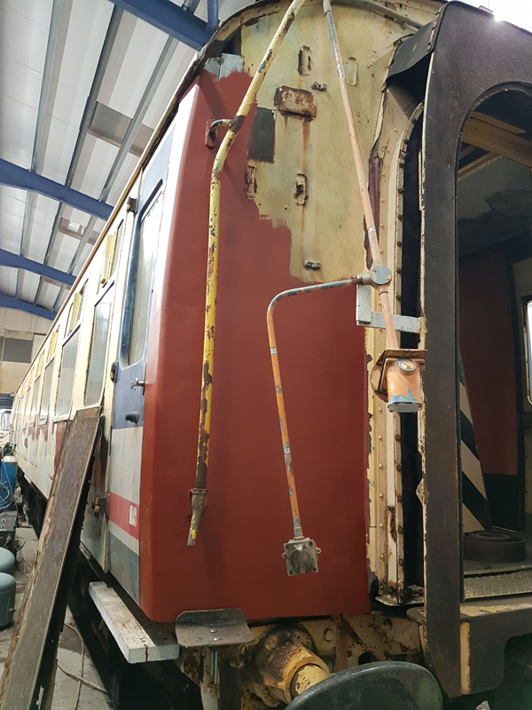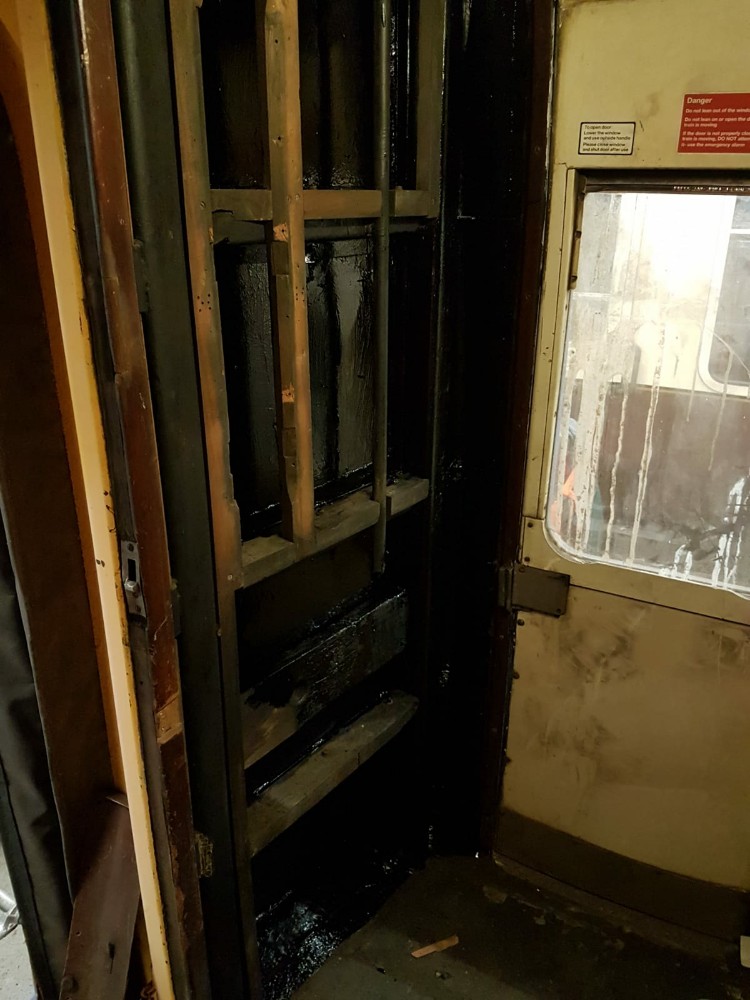 Sunday was quieter, I had a route refresher course so was out of action for the day,  with Nick and Ross at Rothley progressing The Yellow Coach” with cabling being pulled into the conduits fitted last week. Also, the wooden door trims around the refitted luggage and first-class doors have been fitted as well as an area of the Guards compartment wall being repaired.