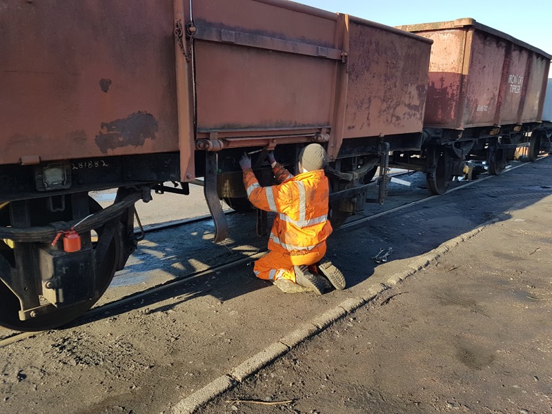 A now seemingly rare day at Quorn on Saturday, with us preparing for the gala next week. With the TPOs unable to run due a Temporary Speed Restriction just on the approach to Quorn, we shall be opening up the Test Car and having our own little open day. We are planned to show what we do on a weekend-ly basis to visitors to the gala, and are planning to show a vacuum cylinder overhaul, re-flooring a wagon and a release valve overhaul. To preapre for the above, we swapped the cylinder from under the ‘regular’ LNER Steel High E281882 fitting a new branch-pipe and overhauled release valve, and removed the 15″ cylinder from the Iron Ore Tippler B385782 ready for overhaul (this is awaiting an overhaul kit). Some attention was paid to the Test Car, with Harry, Eddie and James cleaning and tidying up in preparation to open it again.  This trio also tidied some of the yard area too.