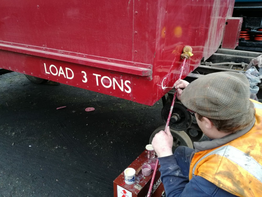 Dave and I got set up in the Test Car, each of us tackling an Esso plate. There is some work still to do on these including a coat of varnish. Not sure if we’ll put these on 3606 or 3621 yet, but they’ll appear out in the wild soon!