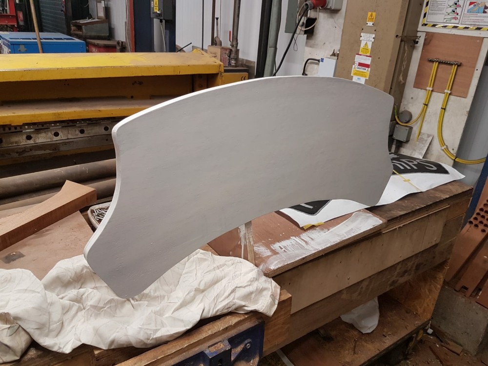 Once sanded fiberglass primer was applied followed by undercoat again heat applied to assist the drying of the paint.
