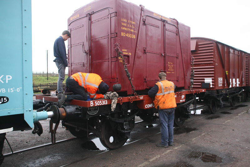 The main reason for the stop at Quorn was to prepare the van train for next week’s photo charters and of course the winter gala.  Trade Posters, wagon labels and chalked destinations being applied.