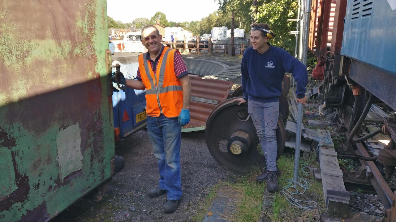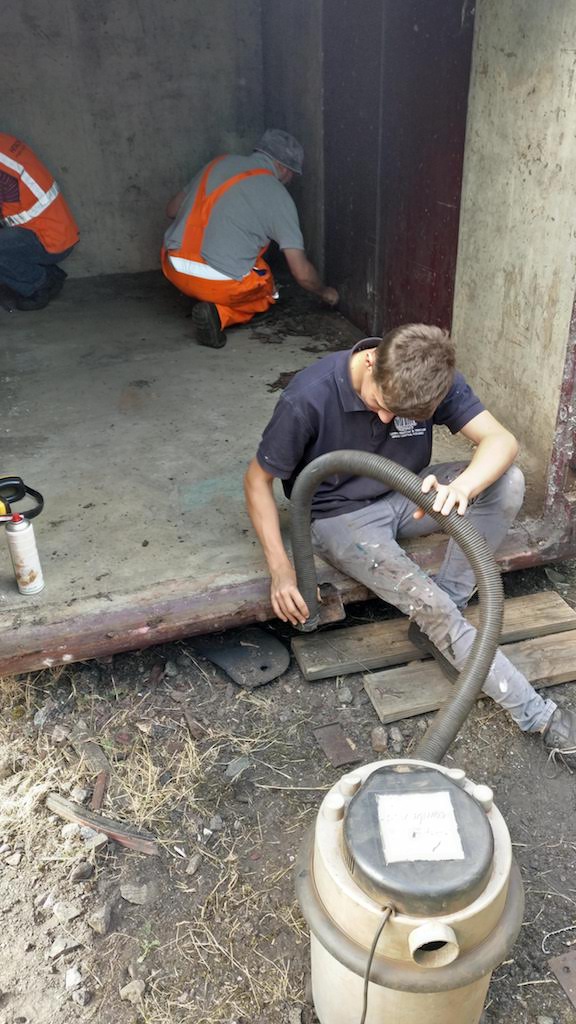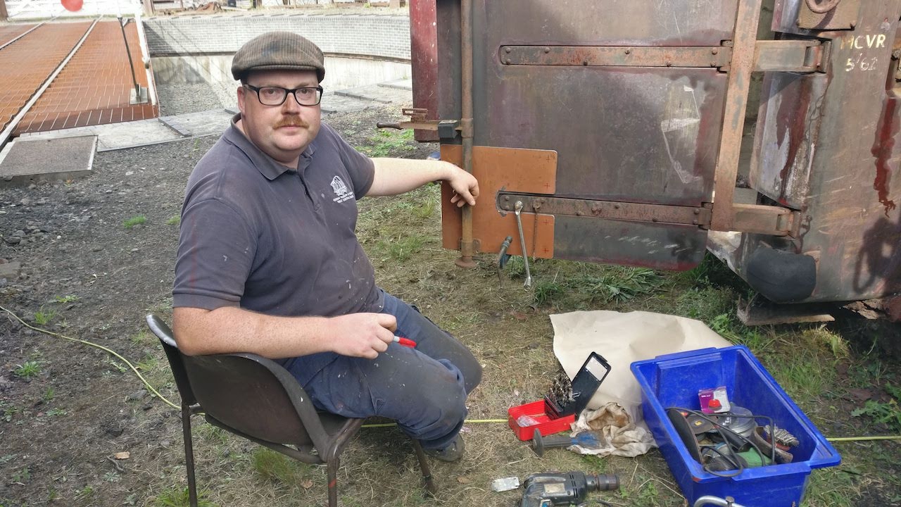 Whilst up on the roof, the areas for repair were cleaned up and red oxided and the repair plates cut to size by Nick and visiting us from the Mid Hants Railway Wagon Group, Dillon has known Nick for many years and assisted Nick when he first started to collect wagons.