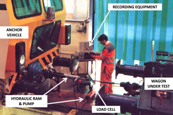 Once the intercom was tested and the static brake tests completed to the satisfaction of the test engineer, the slip coupling was fitted between the test car and the wagon, and testing could commence.