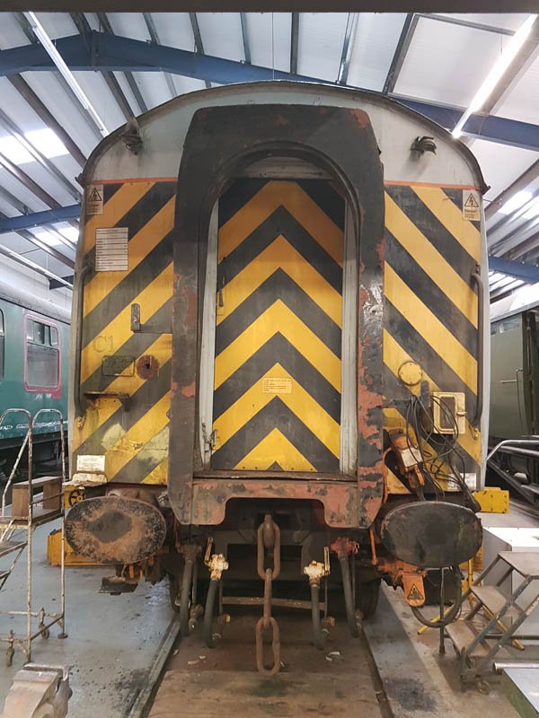 The vehicle has already had some work done by C&W staff.  The sealing of leaking windows and the refitment of Pullman gangway and matching buffers to the Generator end.  This is to enable the coach to be coupled with other coaches and increase the usability of the vehicle, most notably as an emergency brake vehicle if the need arises.