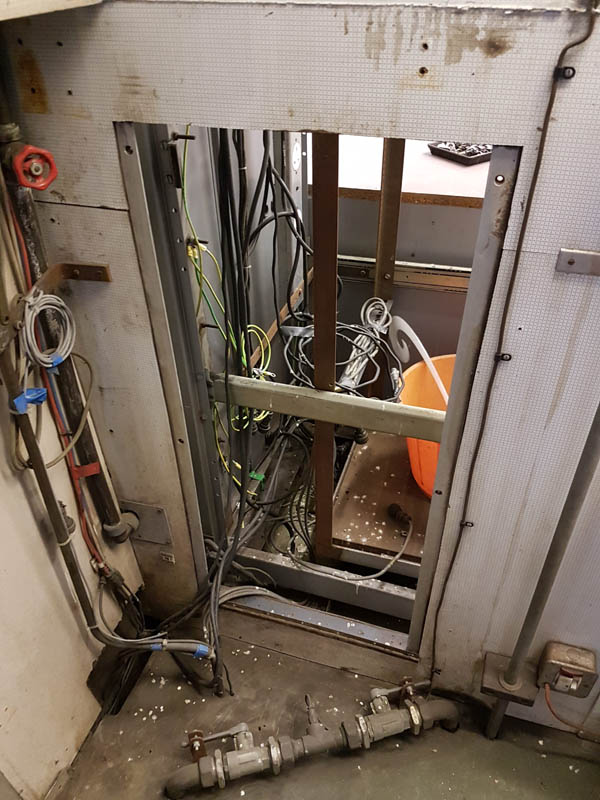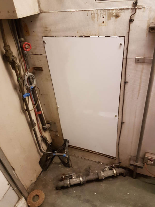 Between the slip end and the main saloon, there was a hole which was the location of test equipment long since removed.  This hole was filled and will help retain heat within the main saloon.