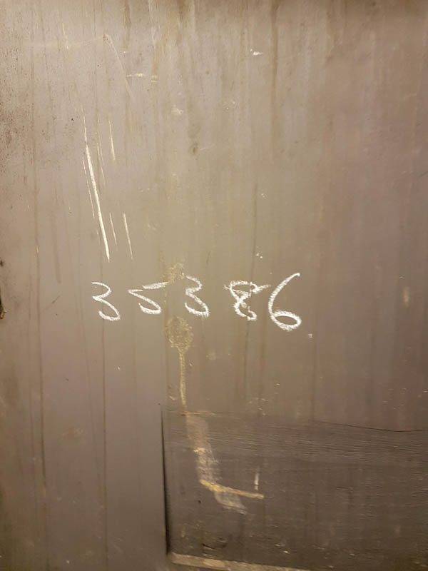 Looking in cupboards and behind panels, we found two noteworthy items.  A BR(M) Blanket and the original running number chalked on the back of an access panel.
