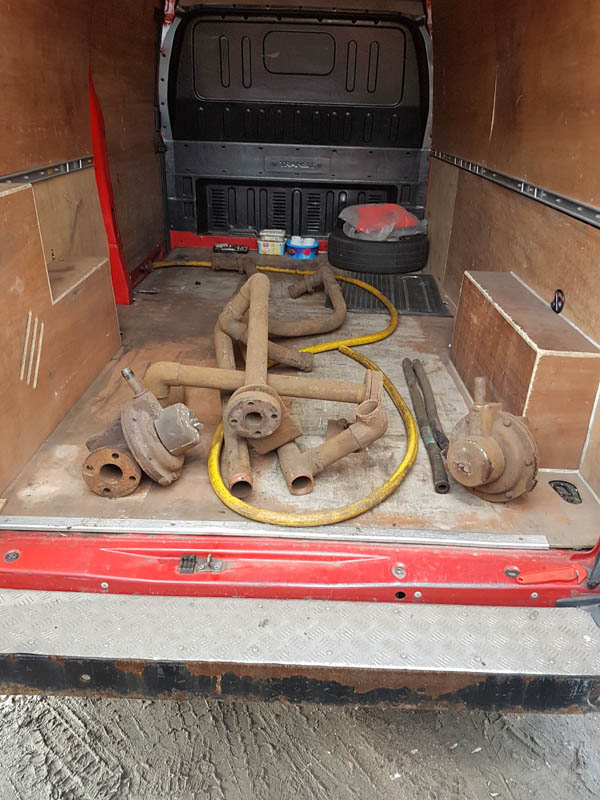 Work this week has concentrated around the vehicle’s vacuum system. Last week, we were able to prove that the vacuum pipe was intact as a throughpipe. We started off by digging out some spare Direct Admission (D.A) Valves and sections of specially shaped pipework out of the van train from storage. This pipework fits into the tee joint from the main vacuum train pipe and drops them down to the D.A valve bracket next to the Vacuum Cylinder.