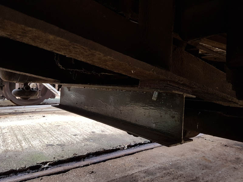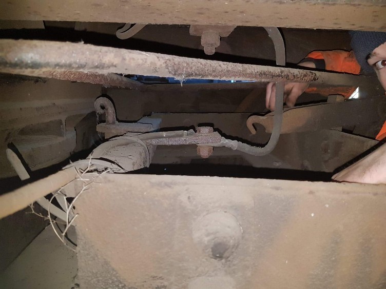Work didn’t just take place on the brakes. Matt has trimmed the buckeye chain guide to allow the Brake Pipe cock on the air system to latch shut. I reinforced the door frame around the lock I fitted last week. I also noticed whilst underneath the vehicle that the return spring for the south brake rigging had come adrift and was not in place. A spare was found and Matt wedged himself into the bogie and fitted it. The train lighting jumper blanking cover was found in the guards area, so Matt refitted it to the North end from whence it came.