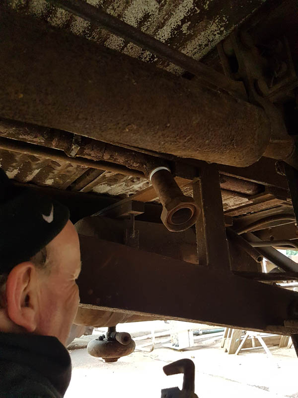 Taken from another long since lost vehicle a full set of coach drawhook springs drawbar and draw-hook was retrieved from storage. Ross had the arduous task of undoing the mounting nut 1/8th of a turn at a time.  Once free the assembly was removed along with the headstock plate.