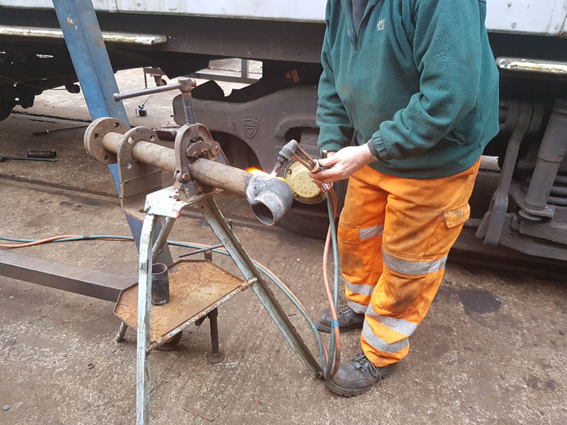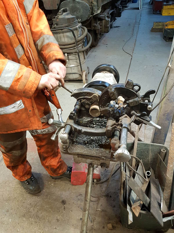 The electric pipe threader made light work or altering the pipes and by the end of Saturday we had managed to effect a brake application on the North end of the coach.