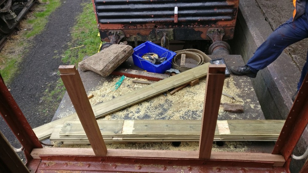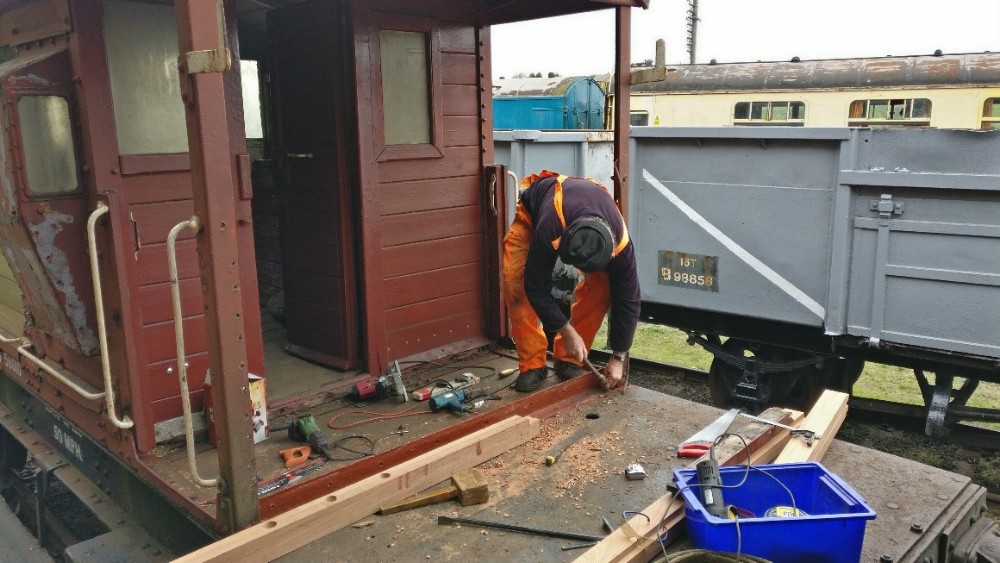 At Quorn Wagon and Wagon this weekend, we have been continuing our efforts on the Southern brake van, S56010. Matt has also continued painting the Caledonian Weltrol, M300356, in readiness the the Great Central Great War event.