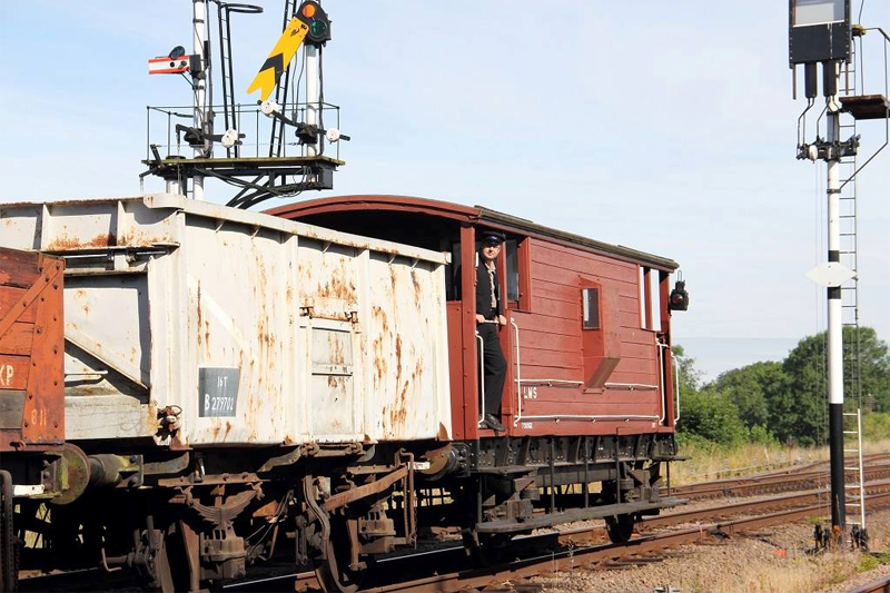 As early as the 1840s wagons or coaches were specifically adapted for a Guard, this was someone employed by the railway to protect the valuable stock carried by the train from theft or vandalism. As these ‘unfitted’ trains (vehicles not fitted with an automatic brake controlled by the locomotive) increased speed and weight the Guards took on more duties relating to the actual safe running of the train. By the 1870s what we now know as ‘brake vans’ were in use and in the case of goods trains meant the Guard was on hand to take action in the event of a breakdown, accident or the more common event of train separation. As the speed of goods trains still continued to increased the purpose of the brake van and the guard’s duties developed further with the Guard using the brake van’s handbrake to assist with keeping the train under control on downwards gradients or whenever he could see that the locomotive’s crew was attempting to slow the train. The Guard could also use the handbrake to keep the loose couplings taut between unfitted wagons  minimising the risk of broken couplings and if no locomotive was attached hold the train with the brake vans brake.