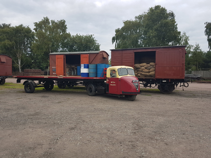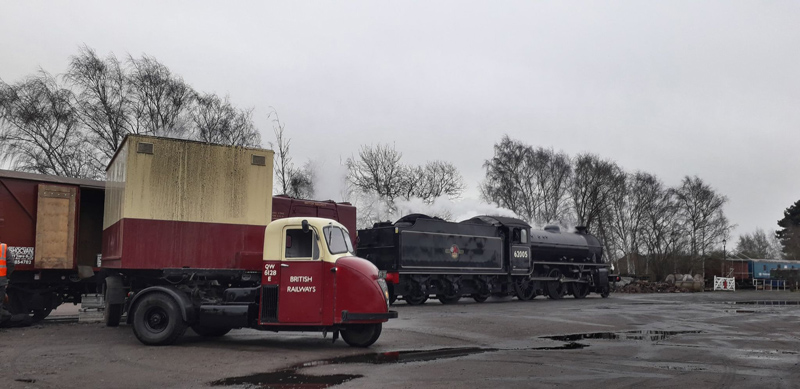She arrived to us in a pseudo British Railways livery of Blood and Custard minus lettering and a little more Crimson that prototypical. Also part of the deal was the insulated body trailer. This had been kitted out as a living van and having spent a couple of nights in it I can state it is both warm and comfortable. Over our first Christmas we removed her indicators and painted the fuel tank, vacuum reservoir, oil bath, engine cover and rear wheels black, more in keeping with a BR Scarab, we also applied lettering and the fictional number QW 6128 E (6 tons and part of the station postcode) This was in preparation for her first public appearance at the GCRs Winter Gala 2020. This went down very well and with a last-minute Photo Charter appearance covering for poor lighting at the preferred location, her usefulness on-site was cemented.