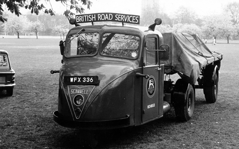 They decided to paint her in to a British Road Services livery, although a fictitious Red by mistake, she was registered WFX 336 in November 1982. In 1984 she took part in that years Brighton Run, using an Hilman Imp as a support vehicle. She also stared in an episode of One by One, filmed in the late 1980s the series followed the career of an international veterinary surgeon. With raising petrol prices a diesel Scarab was bought and she was sold to a Roger Tuplin, Roger bought a trailer, a genuine BR flat from Kings Cross station and after a number of years then sold her to a member of the Nene Valley Railway who fitted the insulated body from a Ford D series lorry to the trailer.